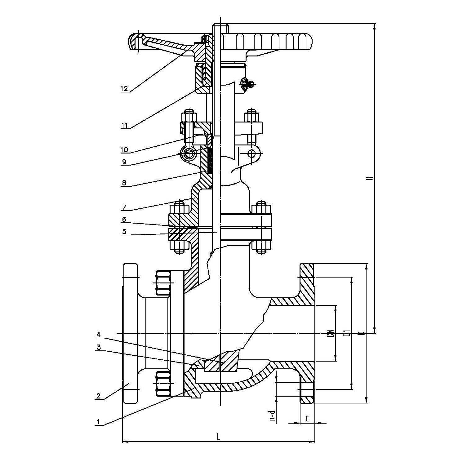 | DN | PN(kg) | L | D | D1 | C | H | n-d |