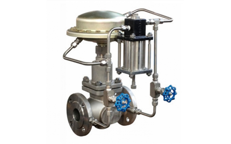 帶指揮器操作式自力式壓力調節閥壓力設定值可在指揮器上實現,在運行中可隨意調整,控制精度比一般直接操作作用式自力閥高一倍左右,適合于控制精度要求高的場合;檢測、執行元件由耐高溫材料制作,無需帶冷凝器也可用于高溫(200℃)水蒸汽場合。
