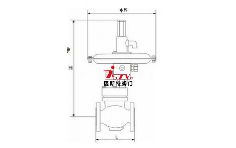 該閥采用大膜片執行機構輸出力大穩定,對壓力流量微小變化極其敏感,控制精度很高,閥芯采用單座流開(高進低出)設計,在閥蓋處(和閥體連接處)安裝有平衡膜片(起到閥前壓力平衡,消除不平衡力)閥后壓力經取壓管進入薄膜執行機構,同薄膜執行機構調節彈簧相比較,壓力達不到設定值(調節壓縮執行機構彈簧)閥后壓力則變大,反之則變小。