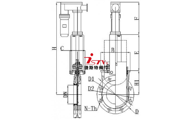 電液動(dòng)陶瓷刀閘閥 外形尺寸:
